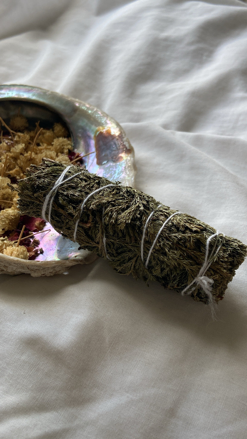 Utilisation : Brûler un côté du fagot à la fois afin que de la fumée s'en échappe et que vous puissiez profiter des vertus du cèdre lors de votre fumigation.