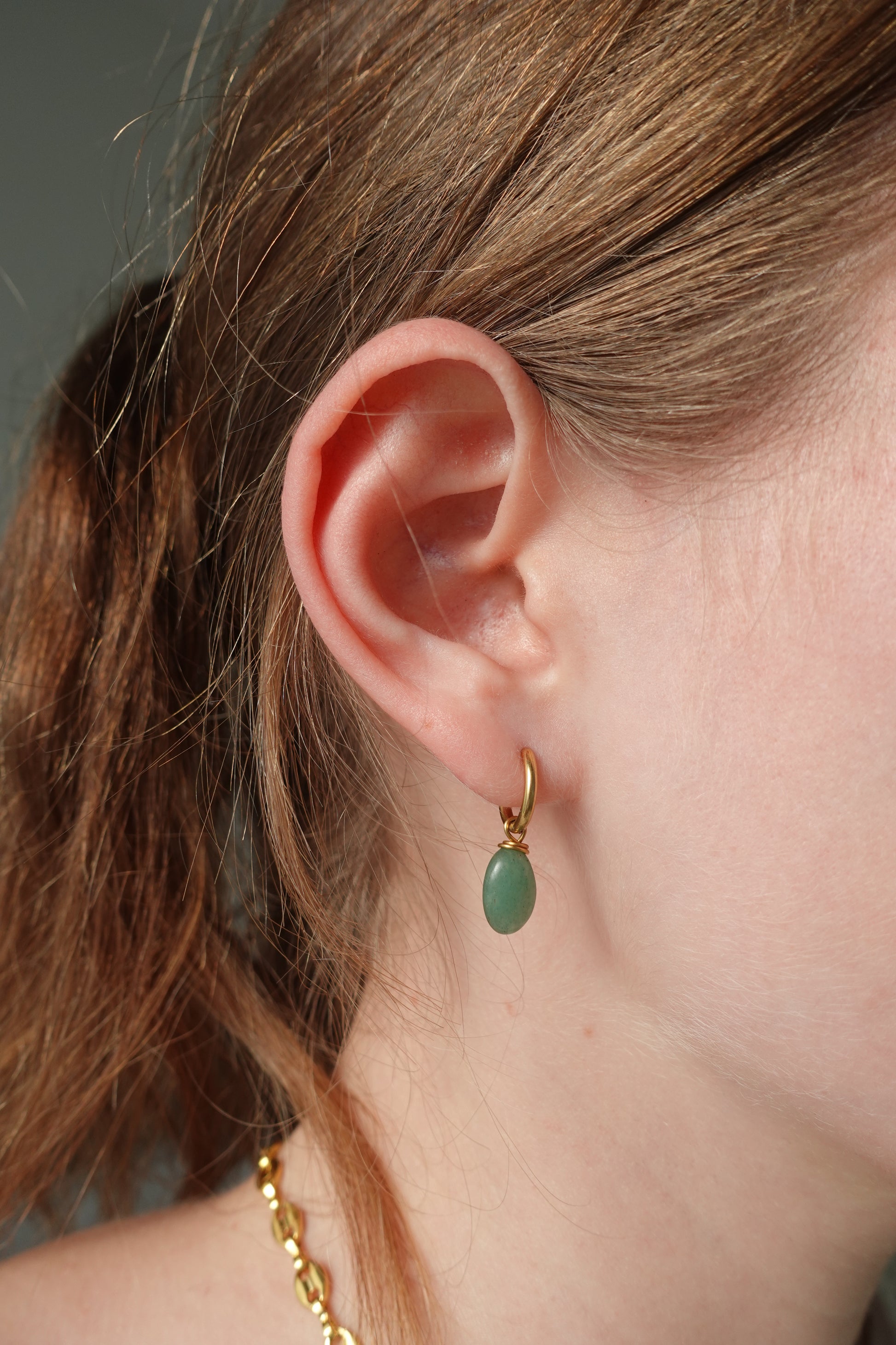 Boucles d'oreilles réalisées à base d'aventurine verte et d'acier inoxydable.