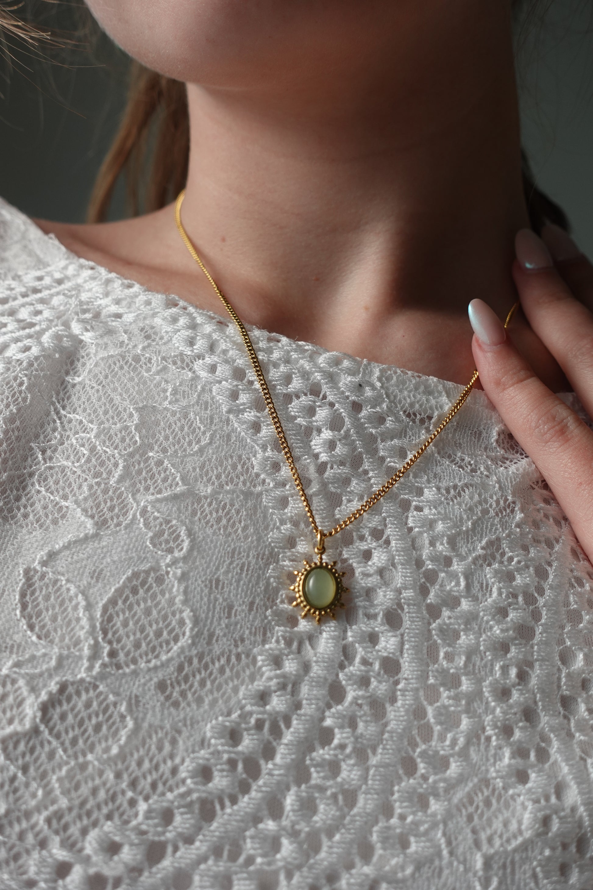 En hommage à Hébé, déesse de la jeunesse éternelle, ce collier incarne la fraîcheur du renouveau et l’éclat d’un cœur qui croit encore. Il symbolise l’élixir d’une âme, prête à renaître chaque jour avec douceur et lumière.