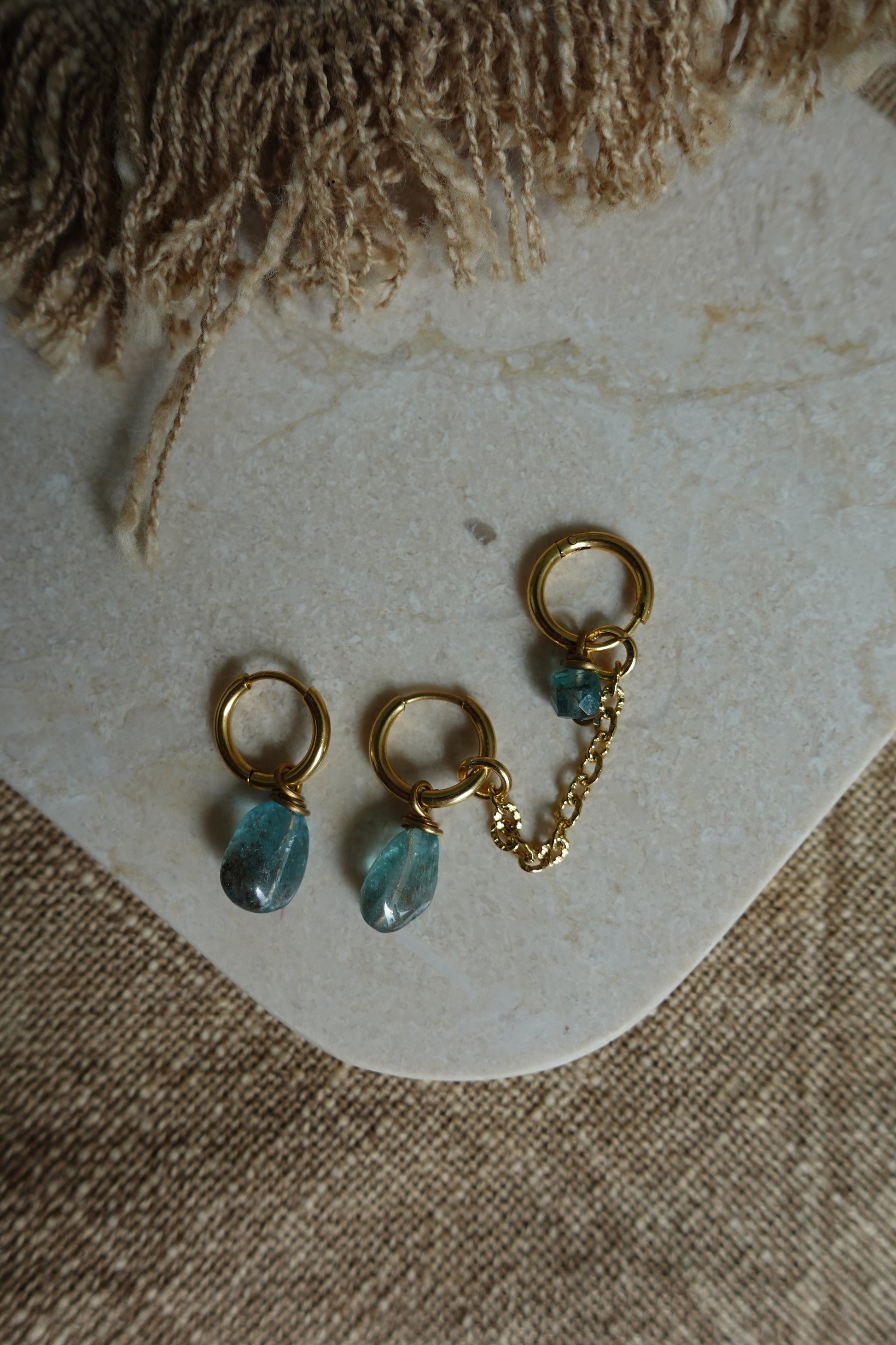 Modèle unique réalisé à la main en apatite et acier inoxydable doré.