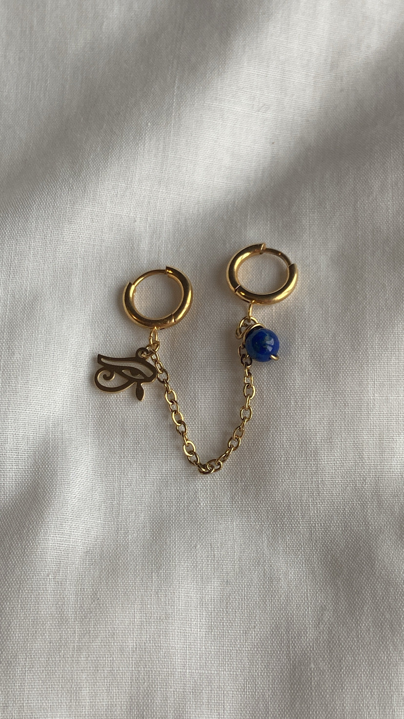Elle vous apportera la protection grâce à son symbole de l'oeil d'Horus qui est réputé pour amener la protection à son porteur et vous permettra de vous reconnecter au divin avec sa pierre de Lapis-Lazuli.