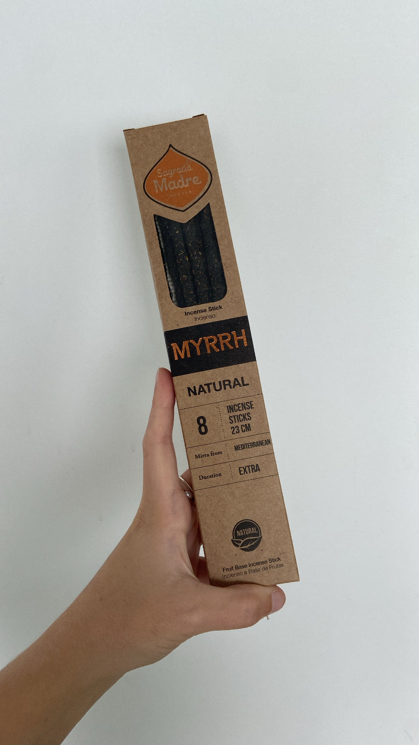 Nouvelle gamme d'encens, Sagrada Madre, à la Myrrhe, un encens unique fabriqué à la main en Argentine, fabriqué à partir de résine de Myrrhe naturelle, de carbone et de sel, et collé avec un liant d'origine végétale.