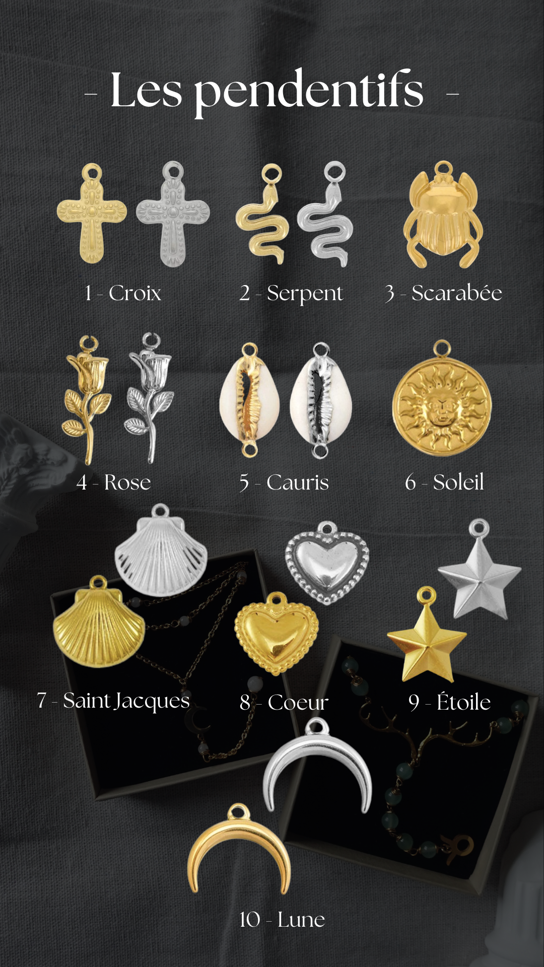 - D'acier inoxydable doré ou argenté ou d'autres matériel en fonction des pendentifs