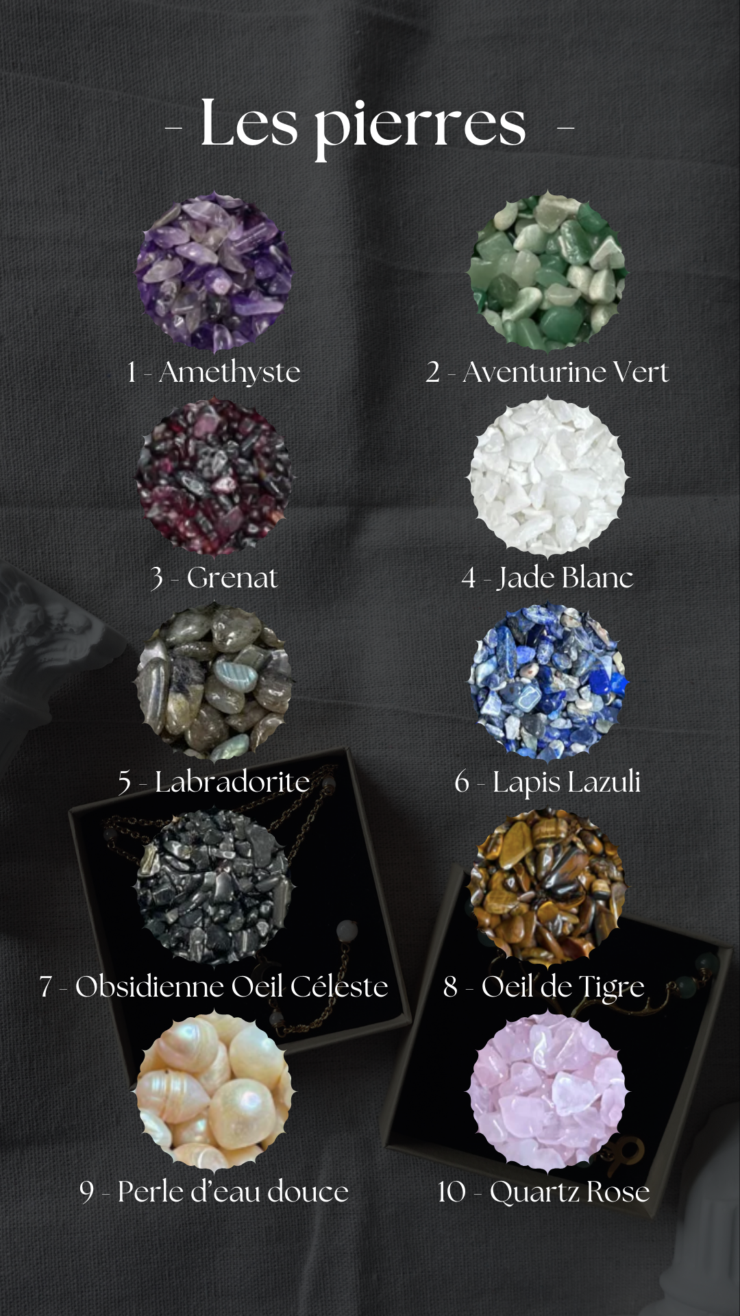 - De pierres naturelles de qualité A ou AA