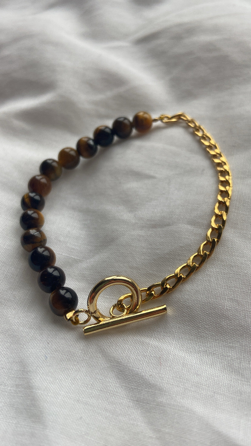 Fait en acier inoxydable doré accompagné de pierre naturelle d'Oeil de Tigre.