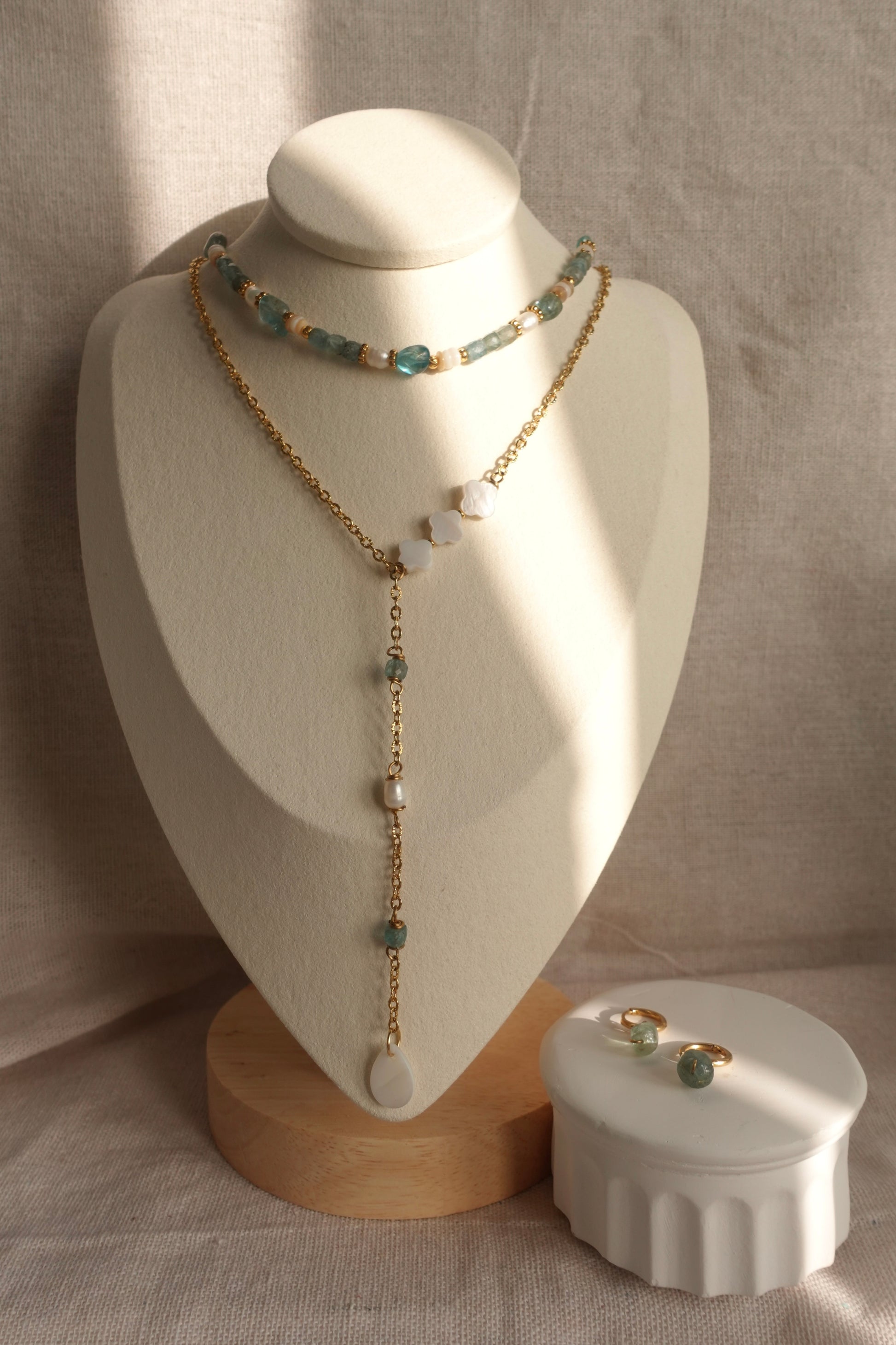 Trois bijoux essentiels en apatite bleue, réalisés à la main, pour se reconnecter à l’intuition, à la douceur et à sa force intérieure.